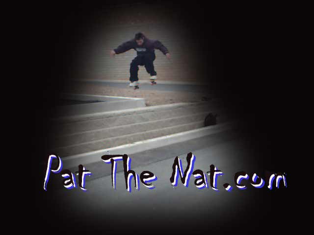 This is the Logo for Pat THe Nat.com. It is a picture of me olliing a little gap outside of Penningtons. This Pic has been manipulated in Photoshop to add iits effect.